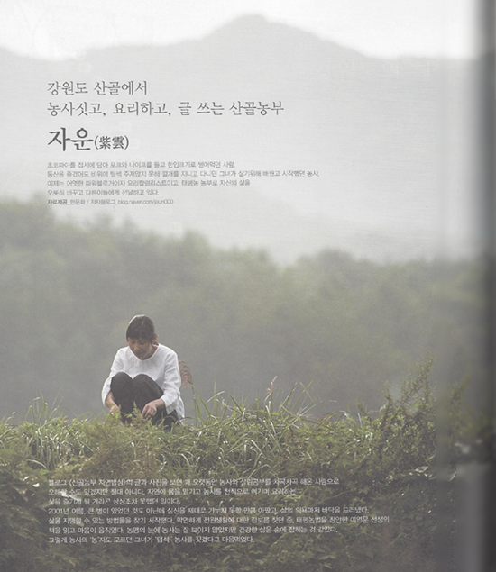 [the 착한가게] 강원도 산골에서 농사짓고, 요리하고, 글 쓰는 산골농부 자운(紫雲) – 2015. 여름호 0 By 한문화 on 2015년 6월 27일 포스트 시리즈 & 미디어 기사 : (중략) : : : (후략) 기사 출처: the 착한가게 2015년 여름호 관련 도서: ≪산골농부의 자연밥상≫ Share. Twitter Facebook Google+ Pinterest LinkedIn Tumblr Email